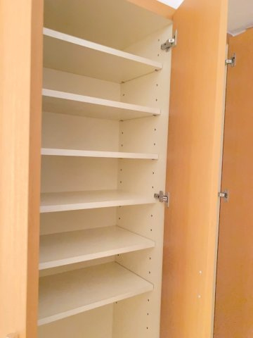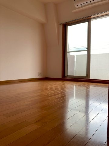 日当たりの良い6.4帖の洋室です。 大きいクローゼットと物入があり、収納力あり。