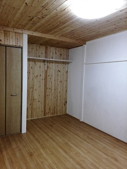 三鷹市上連雀2丁目という好立地にある「コーポ小山」にオーナー様がご友人の大工さんにお願いして和室のワンルームのお部屋を、「木の香りのする」素敵な洋室のワンルームに改造をしたお部屋です。南側と西側に窓もあり、大変明るく、住みやすいお部屋となりました。床・壁一部・天井を無垢のフローリング材で仕上げて、新たにクロゼットと作り付けの棚もつけました。